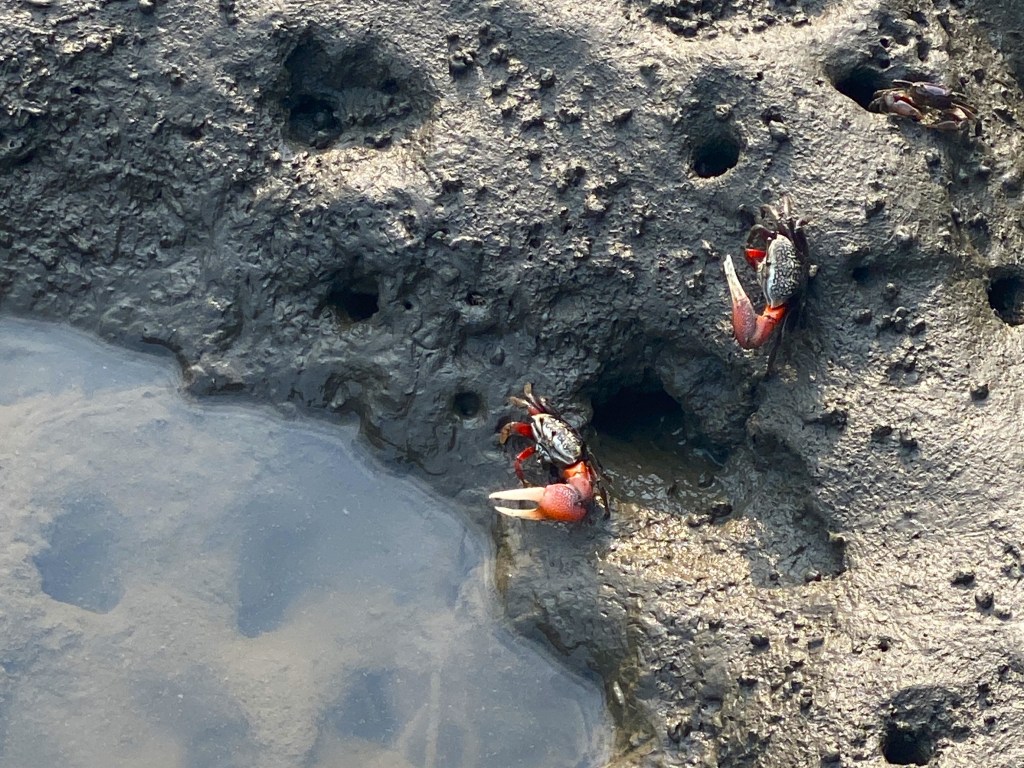 Die Krabben tummeln sich zu Hunderten entlang des Weges. Wenn Du geduldig bist, kannst Du sehen, wie die Krabben ihre große Schere strecken. Es sieht dann aus als würden sie einem zuwinken.